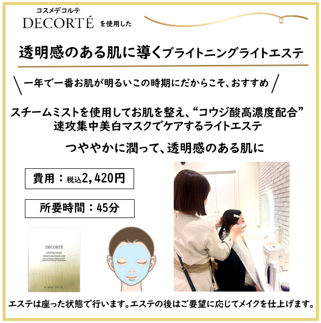 【ご予約受付中】透明感のある肌へ導く ブライトニング ライトエステ